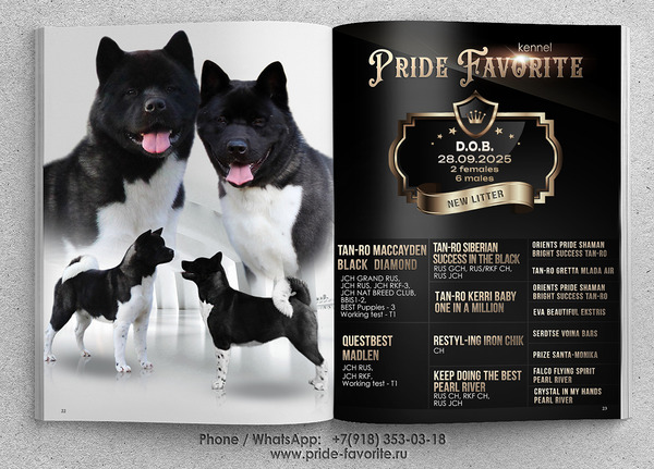 | 06 августа 2025г РОЖДЕНИЕ ЩЕНКОВ АМЕРИКАНСКОЙ АКИТЫ  1  МАЛЬЧИК и 5  ДЕВОЧЕК ОТЕЦ: СН. ALEKSA'S GOLD VEGAS BRIGHT CRISTAl ( ВЕГАС) Юный Чемпион России, Юный Чемпион РКФ, Юный Чемпион НКП, Т-1 МАТЬ: ПРАЙД ФАВОРИТЕ ГВИНЕВРА ( ВЕРА) Юный Чемпион России, Юный Чемпион РКФ Working test - T1 |